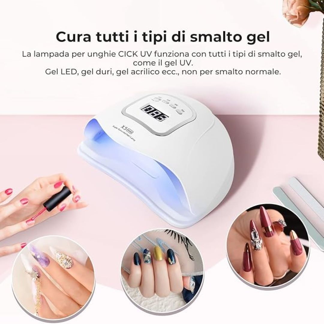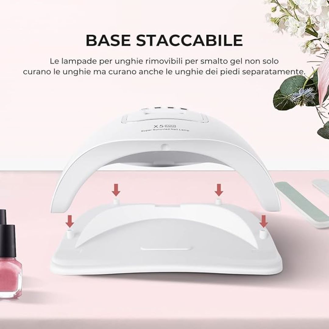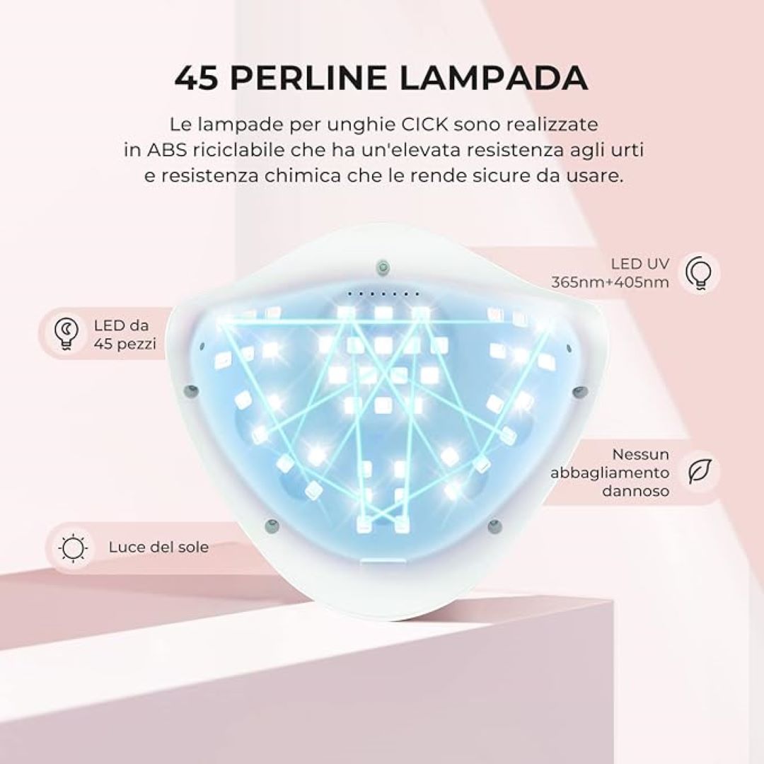 Alta potenza risparmia il tempo di asciugatura: 150W di potenza elevata, 45 lampada LED/UV a doppia sorgente luminosa sono distribuite uniformemente. L’illuminazione a 180 ° senza angolo morto puo’ solidificare rapidamente e comodamente le unghie senza dolore. I...
