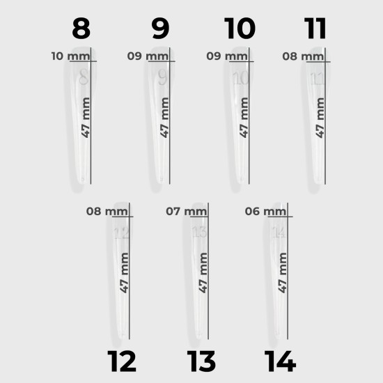 Con questa tip è possibile costruire facilmente e in modo fulmineo unghie a mandorla russa di lunghezza da salone con una linea di lavaggio perfettamente scolpita. È ideale sia per le principianti che per le esperte che desiderano risparmiare tempo e creare unghie french impeccabili.