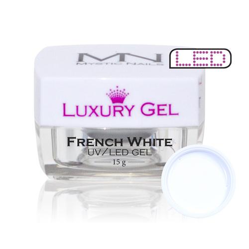 Luxury French White Gel si presenta di colore bianco, da utilizzare per un french perfetto, non ingiallisce, resta bianco al 100%, polimerizza in un minuto nella lampada UV 36w e in 90 secondi nella lampada a LED.