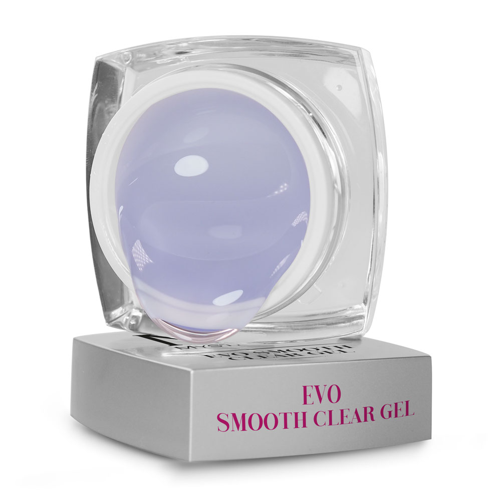 Il Gel Evolution Smooth Clear è un gel monofasico di media viscosità, può essere utilizzato sia per l'allungamento dell'unghia che per la bombatura. È un gel che si presenta nel colore trasparente e catalizza in un minuto nella lampada uv36w, 10 secondi nella lampada led.