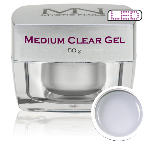 Questo gel trasparente è di media viscosità, perfetto sia per l'allungamento sia per la ricopertura. Il medium clear è un gel che durante la ricostruzione non brucia in lampada e rimane lucido al 100%, non ingiallisce, è autolivellante.
